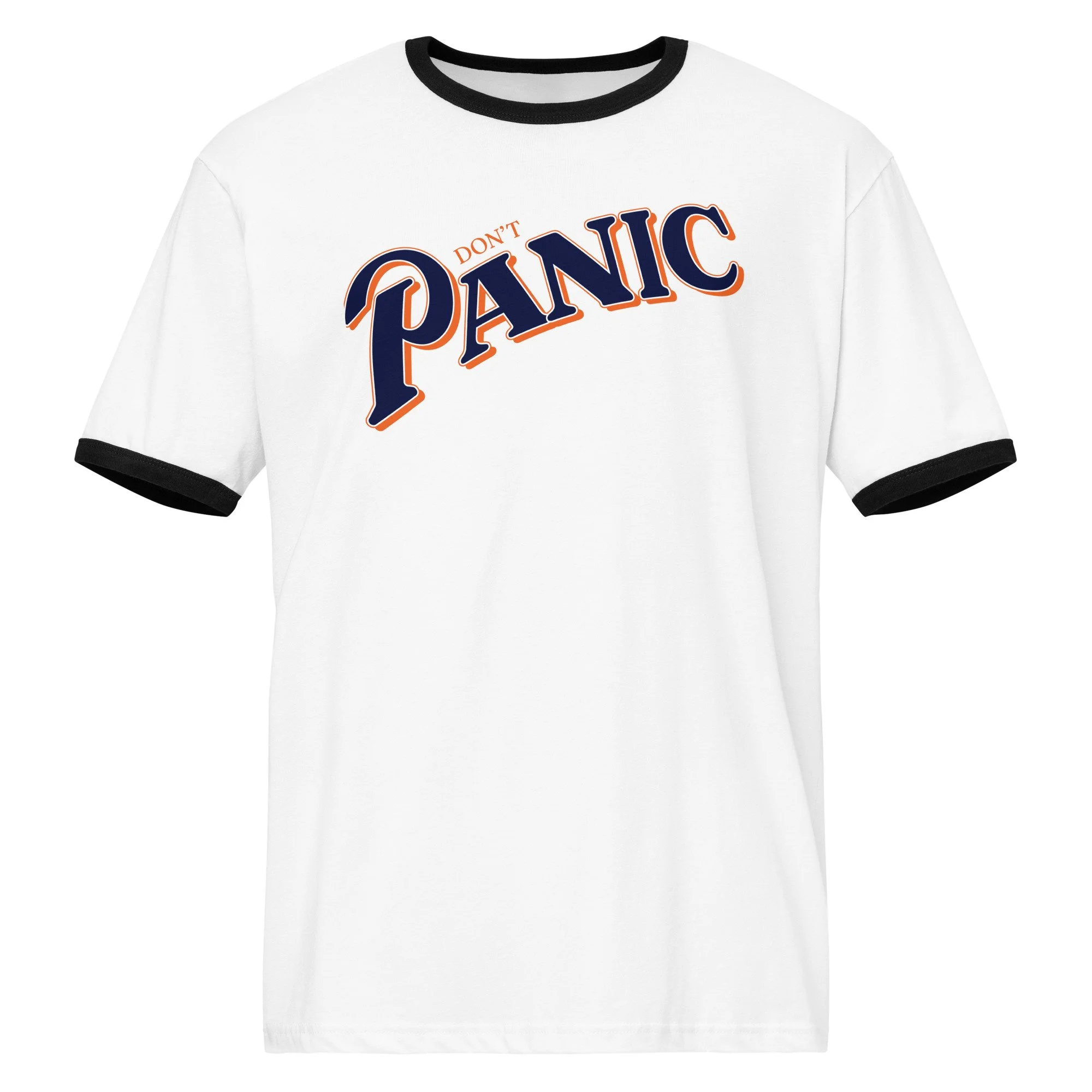 Shop › Don't Panic - Ringer Tee Image 1 of 2 Image 2 of 2 Don't Panic - Ringer Tee $40.00 A great mantra for every baseball season.100% combed ring-spun cotton Color: Select Color Natural / Midnight Navy White / Black Size: Select Size S M L XL 2XL 3XL Add To Cart Added! A great mantra for every baseball season.100% combed ring-spun cotton